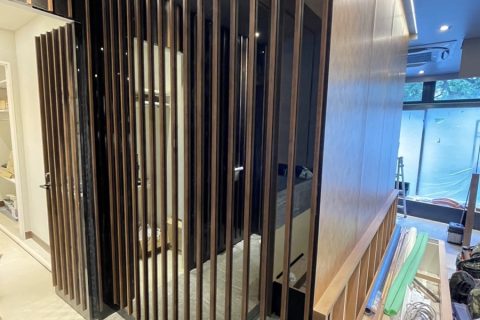 「ミラー面棒付け」とは、主に内装仕上げや建具製作で行われる作業の一つで、ミラー(鏡)を壁やドアなどの面に取り付ける際に、その周囲に装飾的な棒(モールディングやフレーム)を取り付けることを指します。